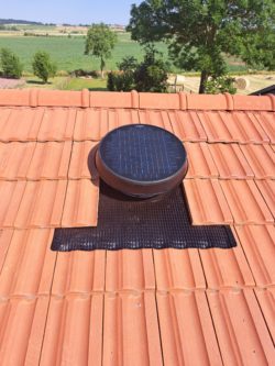 Les combles perdus sont particulièrement sensibles à la surchauffe. L’extracteur solaire Solar Star y est très efficace, car il agit directement sur le volume d’air chaud accumulé sous la toiture. L’extrateur d’air Solar Star peut ventiler jusqu’à 220m² de grenier selon l’ensoilleiment. Au delà il faudra installer plusieurs unités.